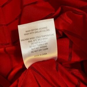 True red Havana tank, sheer top, razor back. 92% polyester 8% spandex