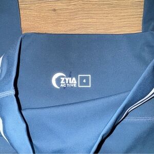 Zyia active slate blue stripe luxe legging size 4. Slight cracking in one area as pictured, otherwise great condition.