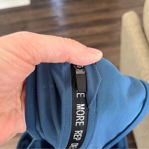 DETAILS: ZYIA sports bra in blue, Racerback, zip in back, mesh semi-sheer top, removable cup inserts.