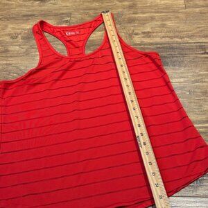 Vibrant red tank top with sleek stripes. Perfect for workouts. Size M. Excellent gently used condition.