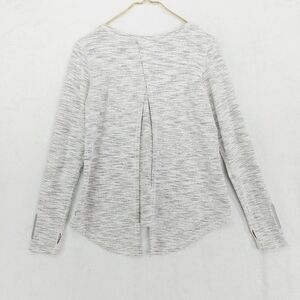ZYIA White & Black Space Dye Print Split Back Long Sleeve Tops 3277