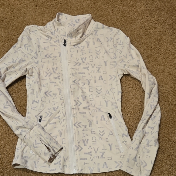 Lightweight zip-front utility jacket with subtle patterned print. Two zip pockets for secure storage. Stand collar adds coverage. Slim, active fit for layering.