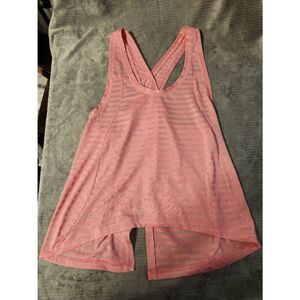 ZYIA Womens M Nimbus-Back Tank Top Pink Mesh Stripe Split Open Tie Back