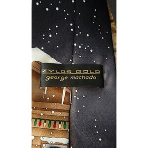 ZYLOS GOLD George Machado Men's 100% Silk Tie Christmas Santa Snowboarding