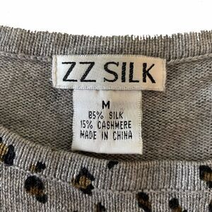 ZZ Silk Medium Sweater Cashmere Blend Animal Print Short Sleeve Black Gray