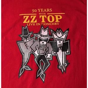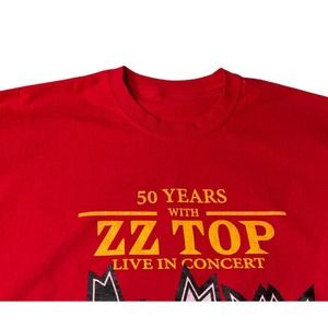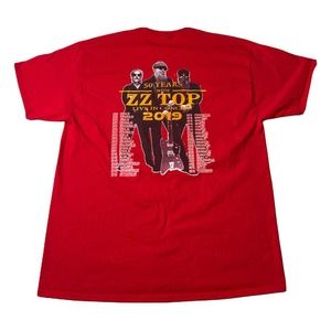 ZZ Top 2019 Concert Tee Mens 50th Anniversary Rock Band Tour T-Shirt in Red