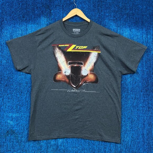 ZZ Top Elimanator Gray Rock T-Shirt Size Extra Large. The shirt is new in great condition. Awesome design stunning finish. Perfect for fans of the legendary rock group ZZ Top. Measures 24 inches pit to pit 30 inches long