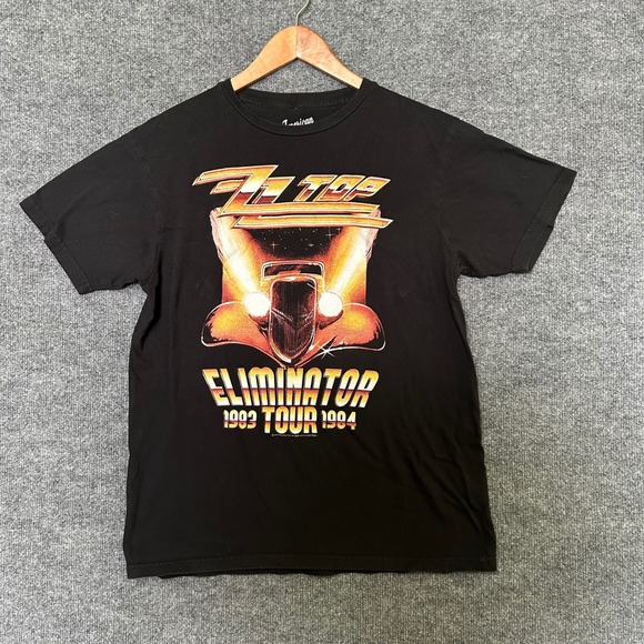 Keywords: ZZ Top, Eliminator, Tour Shirt, Band Tee, Rock Music, Vintage Music, Concert Apparel, 90s Music, Graphic TShirt, Menswear, Collectable, Short Sleeve, Casual Style