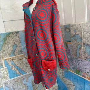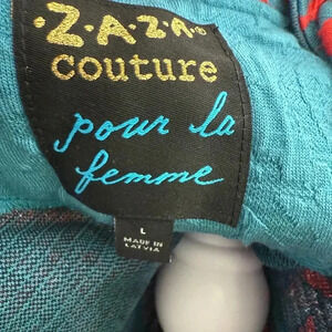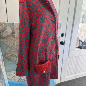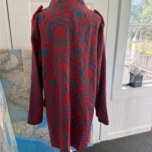 ZaZa Couture Sz L Red Turquoise Geometric Print Jacket