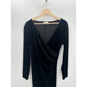 Zaberry Women Black Faux Wrap Velvet Bodycon Long Sleeve Midi Dress Size L