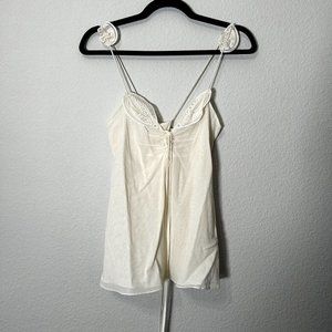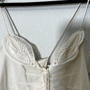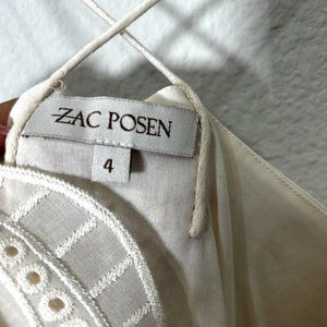Zac Posen Cream Leaf Embroidered Spaghetti Strap Cotton Top Sz 4