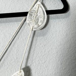 Features embroidered leaves on each spaghetti strap, and on each bust.