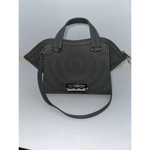 Zac Posen Gray Leather Laser Cut Studded Purse Handbag