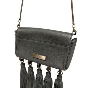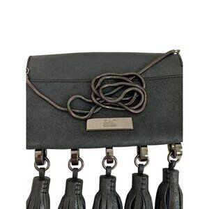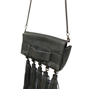 Zac Posen Heavy Tassel Brushed Black Leather Shoulderbag Clutch Hand Strap