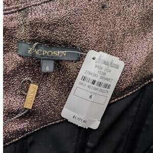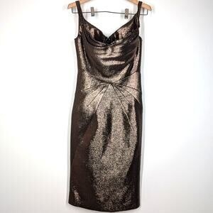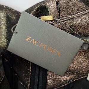 Stunning Zac Posen metallic bustier sheath cocktail dress in size 6. The copper brown color and fitted silhouette make this dress perfect for any special occasion.