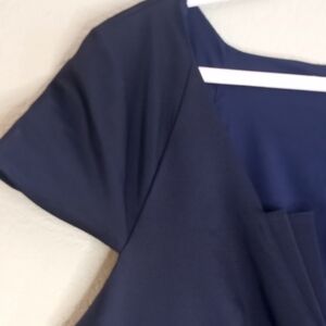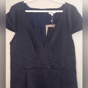 Zac Posen NWT Rare Nautical Navy V-Neck with 20s Art Deco Inspired Structured Origami Folds at Neckline, Flat Pleated Peplum, and Wide Pleated Mermaid Fan Bottom, Perfect Hourglass Structured Scuba Inspired Fabric, Iconic, Classic, Art Deco, Formal, Wedding, Americana, Collectible