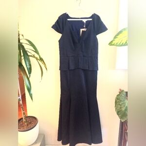 Zac Posen NWT '07 Structured Pleated V-Neck Mermaid Gown with Flat Pleat Peplum