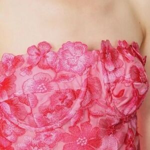 Pink Zac Posen Elegant strapless midi dress. Features intricate floral design. Perfect for special occasions. NWT.
