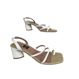 Zac Posen Sammy Leather & woven material women's strappy heeled sandals sz 6.5