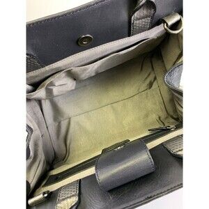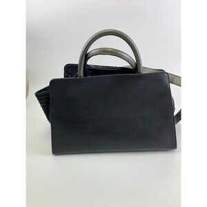 Zac Posen Satchel Purse Black Leather Fur Stripes Tote Crossbody Strap Snap