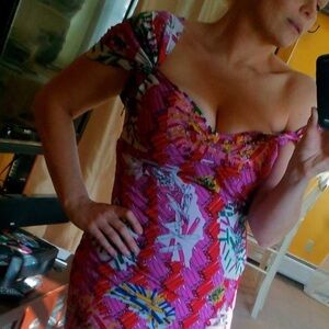 I love this dress , but I just don’t go anywhere that I can use it . I bought it in the early 2000 and love it , I’m curvy so it’s hard to get a dress that fits me all over . This one dose . My friend who isn’t as curved and shaped more like the model in the first photo borrowed it for an event and it fit just like the first picture. I’ve included a picture of the dress on me in the second picture to show how it looks on a body that got more curves as well ..