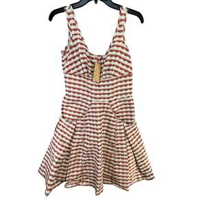 Z Spoke Zac Posen Mini Dress Womens Size 4 Orange Taupe Geometric Stripe Fit Flare