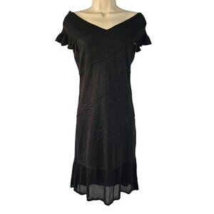 Zac Posen for Target Off Shoulder Black Knit Dress Gold Metallic Deep V Neck M