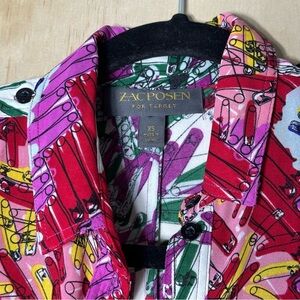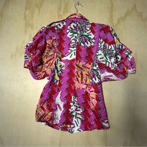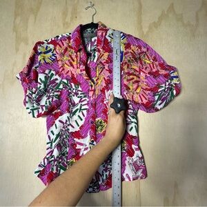 Vibrant abstract pattern. Button-up front. Short sleeves. Perfect for a chic statement. No flaws! Super cute!