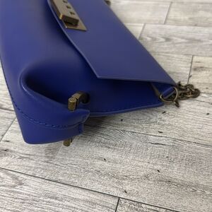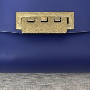 Zac Posen Eartha Cobalt Blue Folded Gusset Leather Crossbody.  Excellent preloved condition.  Bronze tone hardware, back slip pocket, flip lock front flap closure.   Measures 9” x 5.25” x 2”.  Comes with dustbag.