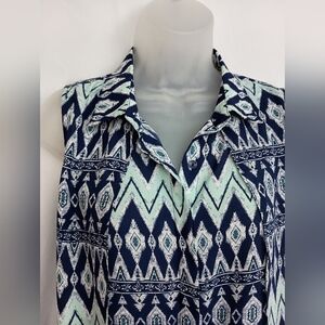 Zac & Rachel 2/$30 Blue and White Geometric Tunic (#326)