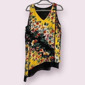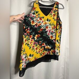 Zac & Rachel Asymmetrical Yellow Floral Blouse