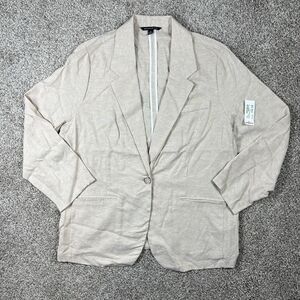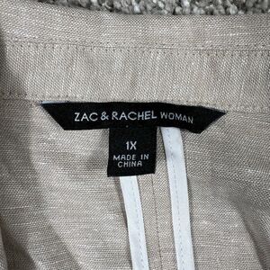 Zac & Rachel Blazer Womens 1X Linen Blend Beige Lightweight Deconstructed Relax