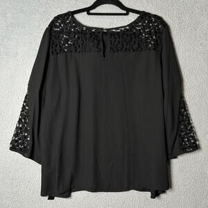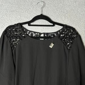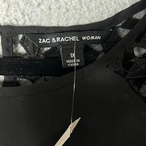 Zac & Rachel Blouse Womens 1X Black Long Sleeve Crew Neck Sheer Top Blouse NEW