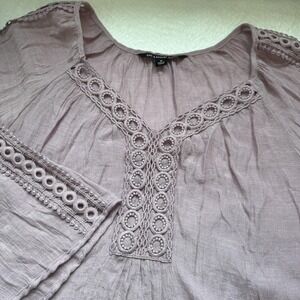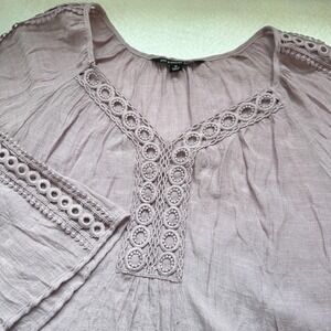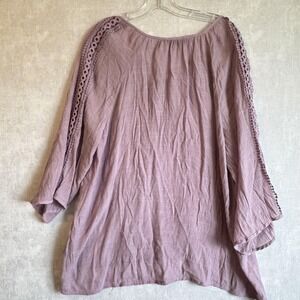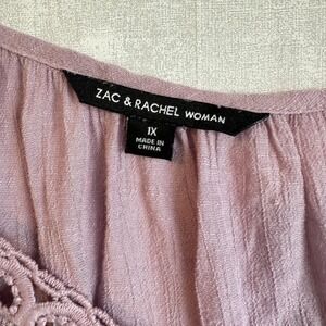 Zac & Rachel Blouse Womens 1X Purple Boho Crochet Detail Tunic Flowy Top
