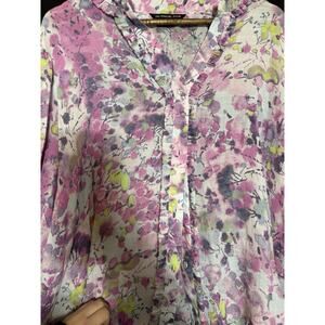Zac & Rachel Blouse Womens 2X WaterColor Floral Bell Sleeve Lightweight Fairy