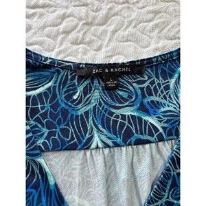Zac & Rachel Blue Floral Print Vneck Flowy Blouse size large