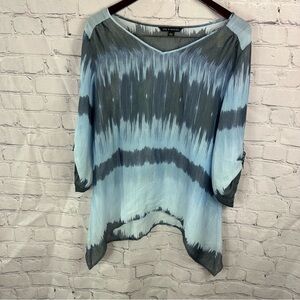 Zac & Rachel Blue grey Asymmetrical Tunic semi-sheer sz large flowy