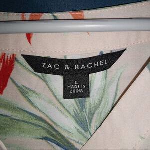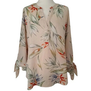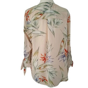 Zac & Rachel Blush Tropical Botanical Print 3/4 Sleeve Tie Detail Size Large