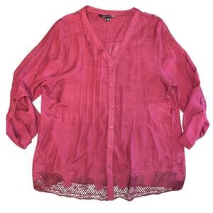 Zac & Rachel Burgundy Button Front Roll-Sleeve Accented Hem Shirt Size L