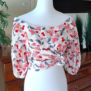 Zac & Rachel Cherry Print Off-Shoulder Blouse with Ruffle Detail Sz Small