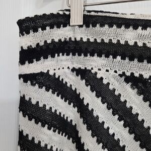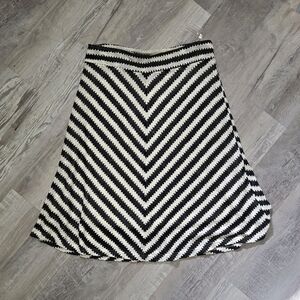 This is a Zac & Rachel skirt. Size large. It's mid/knee length with a lightweight and really soft material. Off white color with black diagonal stripes. It also has a full-length inner lining to prevent see-through. It's been worn a few times but still in great condition, no holes or stains. Perfect for semi-casual, office wear, business casual, school, teacher outfit, party, get-together, bohemian, etc.