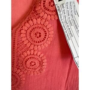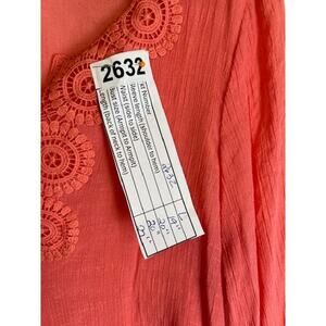 Zac & Rachel Crochet Trim Neck Slit Sleeve Blouse Bright Coral Women's Size L