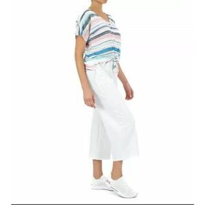 Zac & Rachel Crop Pants Linen Blend Wide Leg White Belted Buckle Size XL 16 18