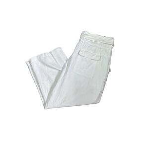 Womens Zac & Rachel Linen Wide Leg Crop Bright White Belted Buckle Size XL 16 18
