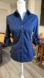 Chic dark blue button-down shirt. Features roll-up sleeves and front pockets. Ideal for any occasion. Good Condition