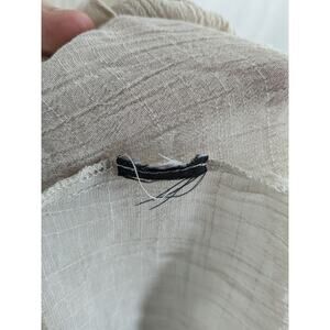 Zac & Rachel Draped Blouse L Cream Split V Neck Roll Tab Sleeve Tunic Button Up