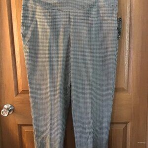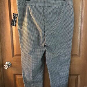 Zac & Rachel NWT Dress Pants, "The Ultimate Fit" 18W 47% Polyester, 28% Rayon, 13% Linen, 9% Nylon, 3% Spandex, White black, green gold very small checkered print, very dressy pants (Tag says $68.00_, 38" L 20" W Pants have 2" slits at bottoms on each side of legs