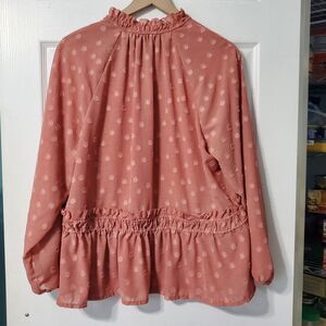 Zac & Rachel Dusty Rose Monochromatic Dotted Print Peplum Long Sleeve Blouse XL