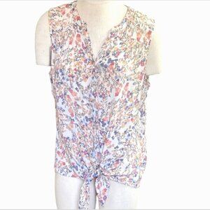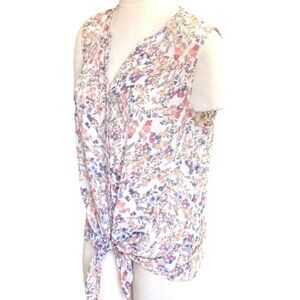 Zac & Rachel Floral Button-up Sleeveless Tie-Waist Top XL 151D