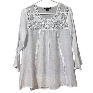 Zac & Rachel Floral Embroidered Tunic Top White Lightweight Flowing Size Small